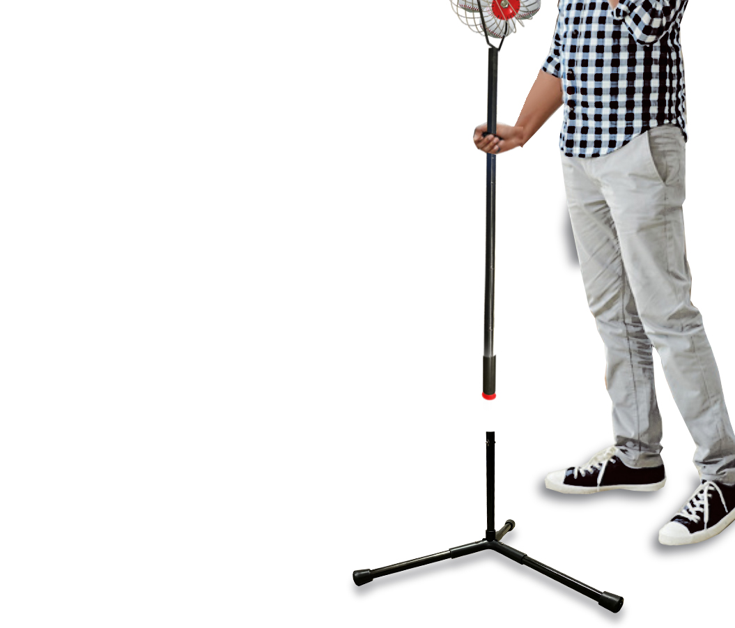 Ball Vacuum’s innovative tripod uses a pushpin to optionally lock the handle into place so Ball Vacuum transports conveniently to your home or ball field.
